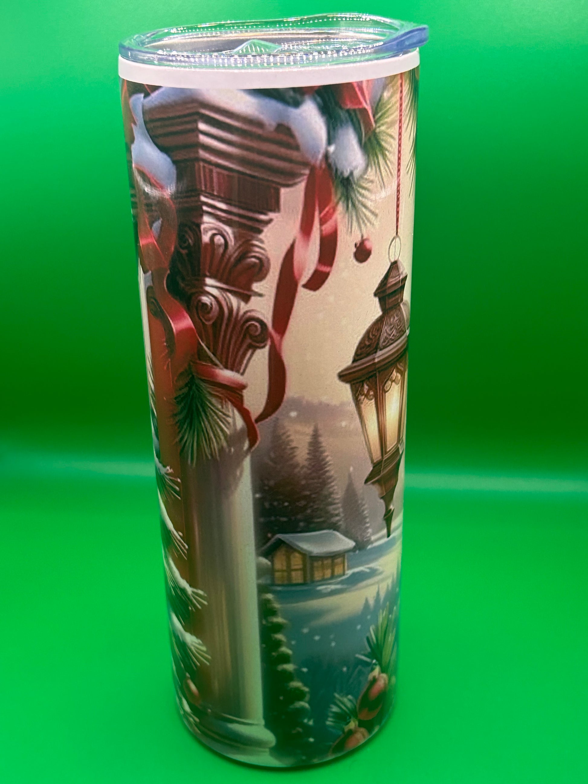 20 ounce Christmas Tumblr keep your drinks hot or cold. 24 hours comes with the lid and straw.